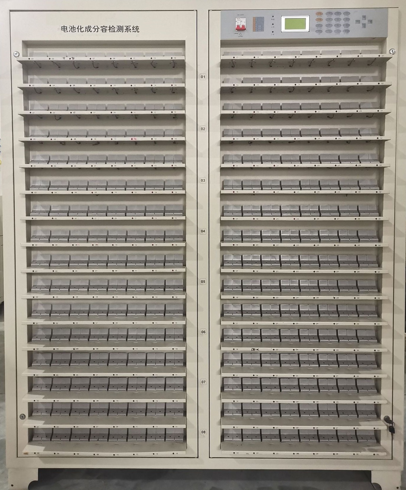 電池分容柜分為生產(chǎn)用和試驗(yàn)用兩大類,生產(chǎn)用又分為圓柱,鋁殼和聚合物兩種類型,二者內(nèi)部結(jié)構(gòu)完全一樣只是夾具不同,圓柱與鋁殼采用上下針接觸,而聚合物則采用鍍金扁平夾具夾持極耳進(jìn)行沖放.512個點(diǎn)完全共用,統(tǒng)一的電流與電壓,所以適合批量生產(chǎn).實(shí)驗(yàn)室用則每個點(diǎn)完全分開,可獨(dú)立工作,電流大,一臺機(jī)多數(shù)僅能控制8點(diǎn)左右.
